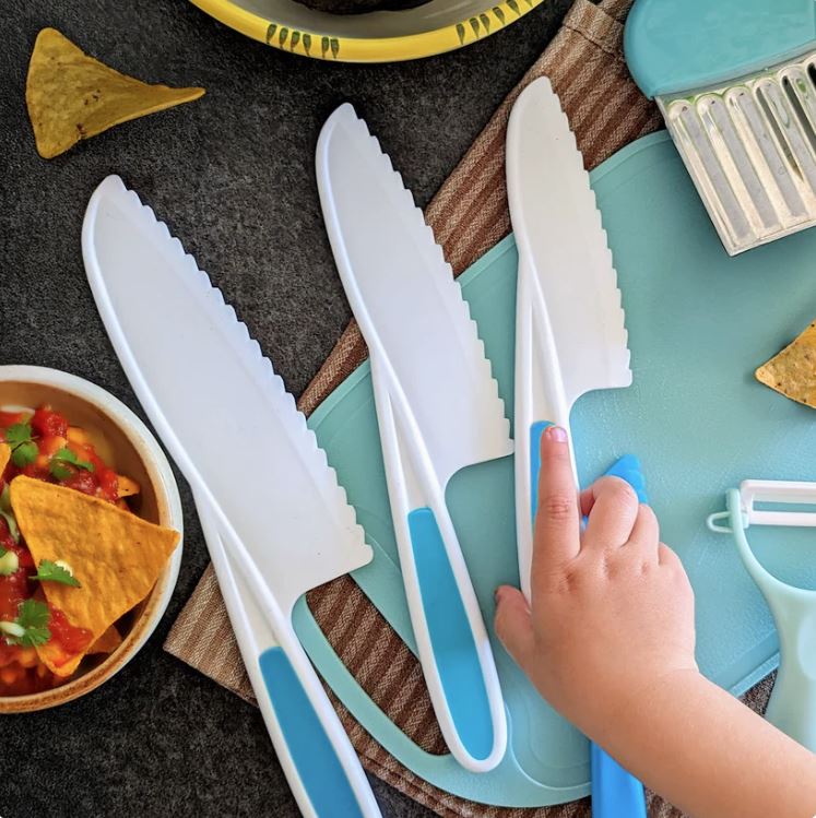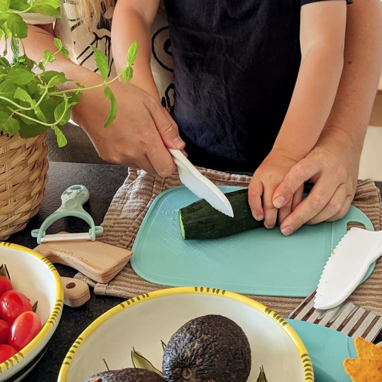 Perfekt til at skære frugt, grøntsager og sandwich – helt uden skarpe kanter og risiko for små hænder.